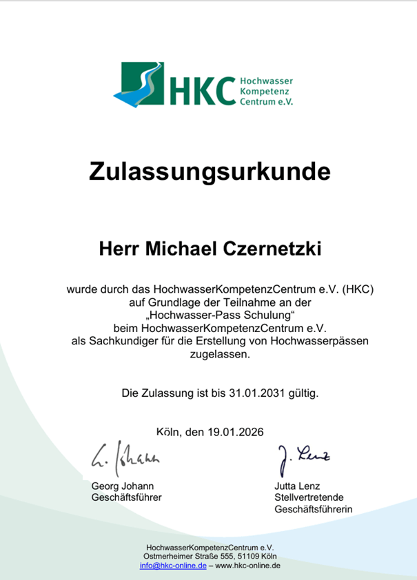 - Sachkundiger für die Erstellung von Hochwasserpässen